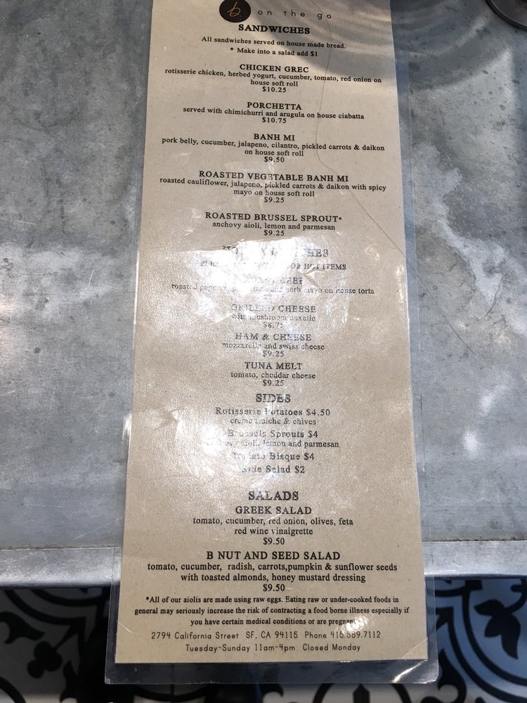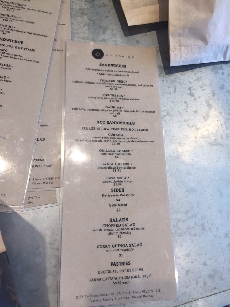 Introducing B. on the Go—an inviting cafe nestled in San Francisco, where deliciousness meets convenience. This brand specializes in creative sandwiches, serving as the perfect pit-stop for lunch or a casual bite. With a menu that boasts hot sandwiches like the Cubano and trendy twists on breakfast classics, the options are sure to tantalize your taste buds.