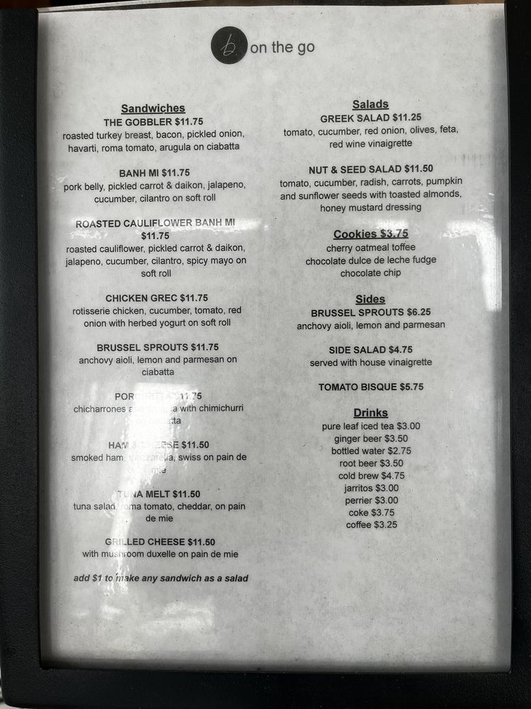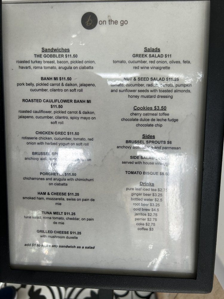 Customers rave about the quality—freshly baked bread and standout ingredients shine in each bite. Whether you’re taking a moment for yourself or grabbing a meal to enjoy elsewhere, B. on the Go delivers quick, satisfying, and seriously flavorful sandwiches that will keep you coming back for more.